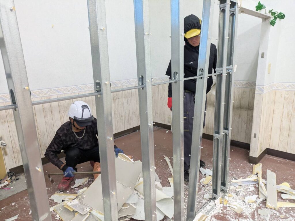 店舗の現状回復のために、間仕切を新設しました。